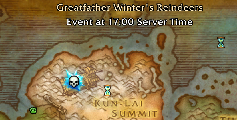 Every day at 17:00 Server time Greatfather Winter Event: help Greatfather Winter Count His Reindeers (Available Icon on Map)